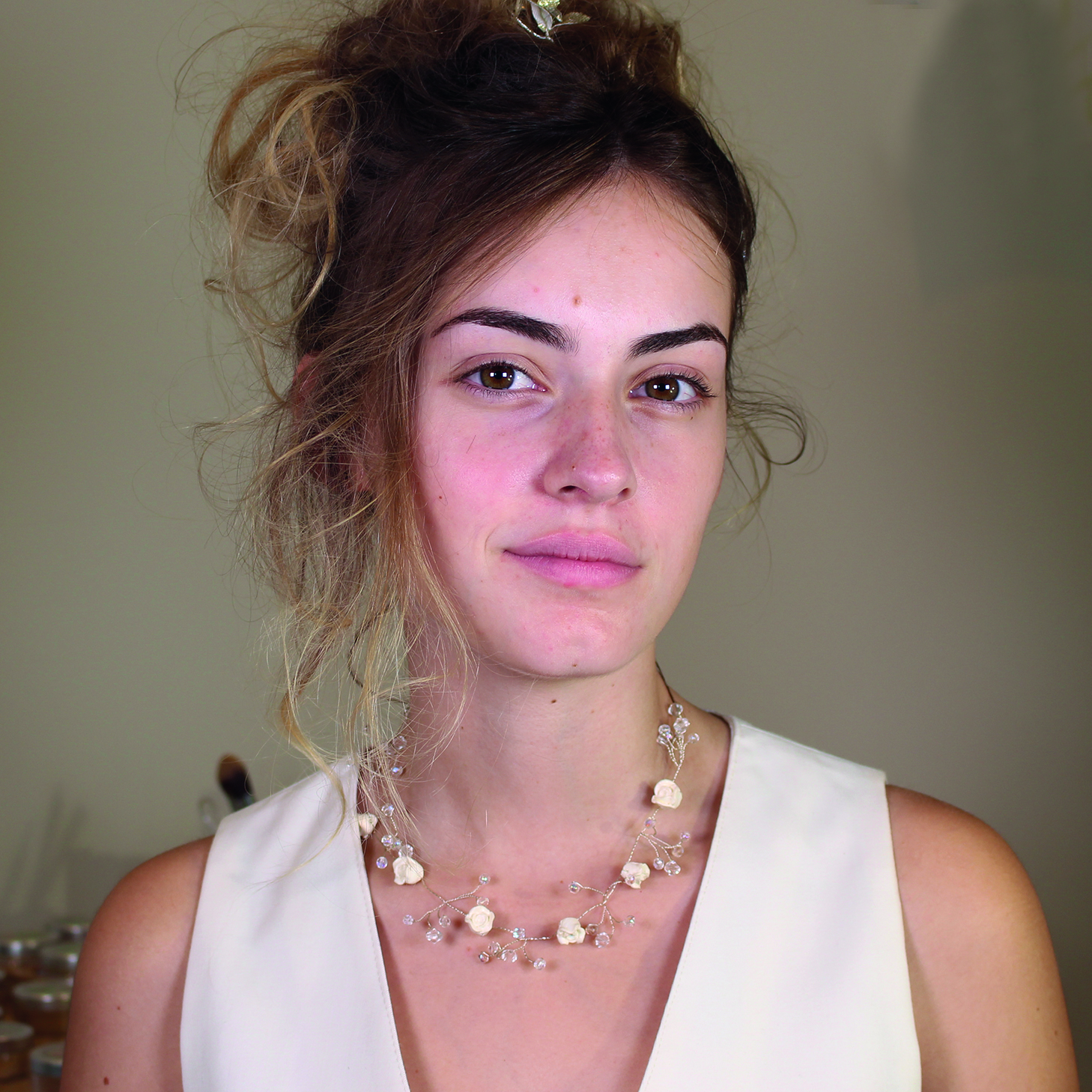 Hier sehen wir das ungeschminkte Gesicht von Simona. Natürlich ist sie so auch sehr schön. Was ANGEL MINERALS aber leistet, wirst Du deutlich sehen, wenn sie geschminkt ist: Es bringt ihre natürliche Schönheit noch mehr zur Geltung und sie wirkt vollkommen authentisch.